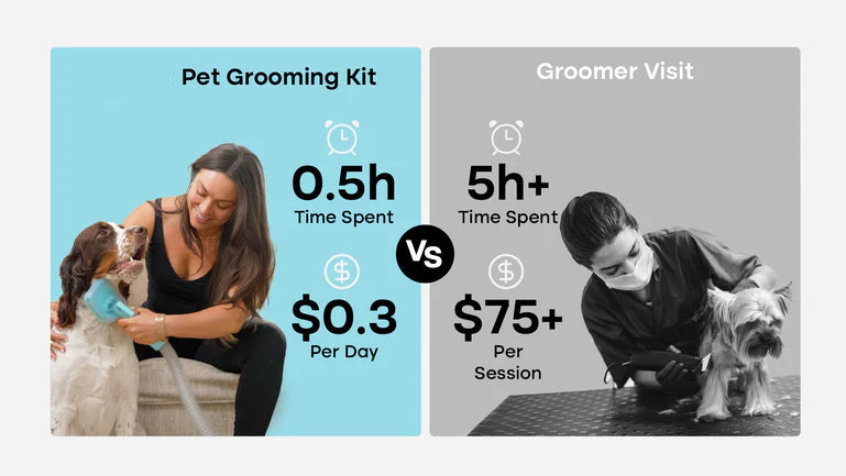 The frequency depends on your pet's coat type, lifestyle, and individual needs. For the grooming device, most pets benefit from 1-2 sessions per week, while long-haired breeds may require more frequent grooming. The grooming wipes can be used daily or as needed for quick cleanups between baths, paw cleaning after walks, or freshening up your pet's coat. Regular grooming helps reduce shedding, prevents matting, and maintains your pet's hygiene and comfort.